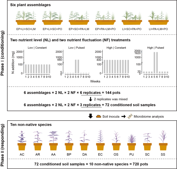 在气候变化与人类活动持续加剧的背景下,资源可用性的变化正深刻影响外来植物的入侵过程。传统观点认为,资源增加可直接促进入侵。然而,越来越多的研究表明,资源变化不仅直接影响植物,还通过调控土壤微生物群落,形成持续存在的土壤遗留效应。但资源变化如何通过土壤遗留效应影响外来植物入侵,目前尚缺乏系统认识。